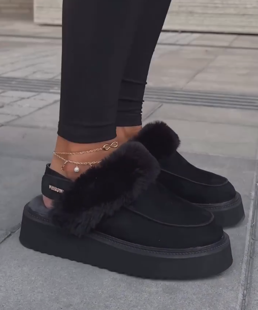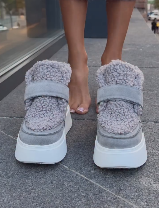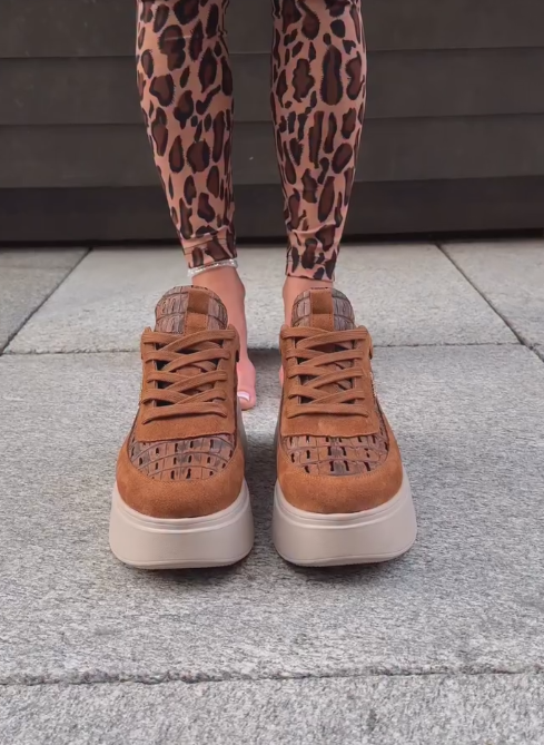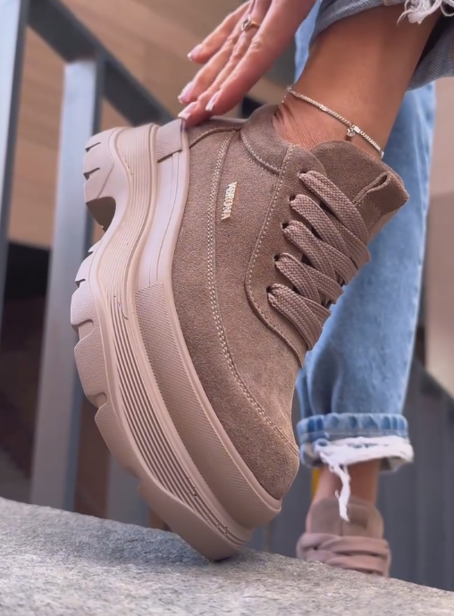 Brown suede and fleece sneakers