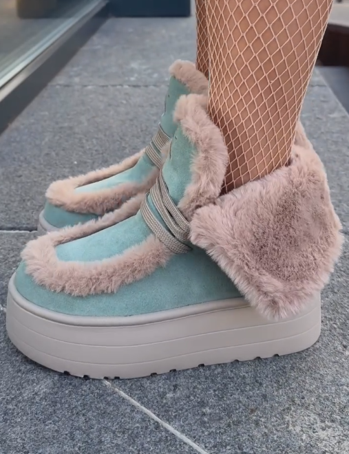 Fleece sky blue cotton boots