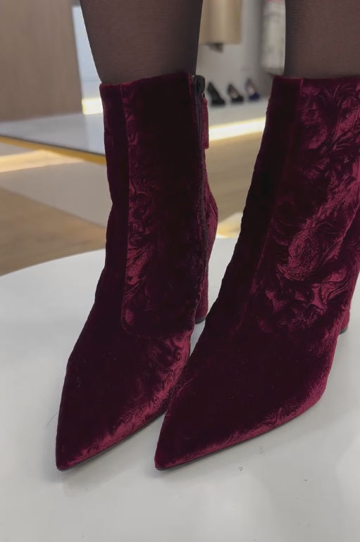 Red velvet ankle boots