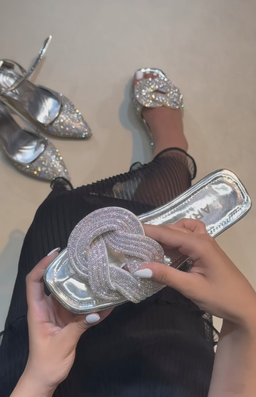 Knotted silver sequined sandals