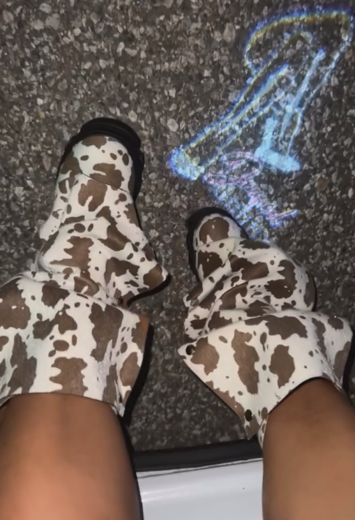 White and brown cow boots