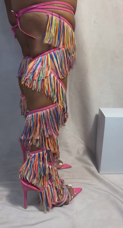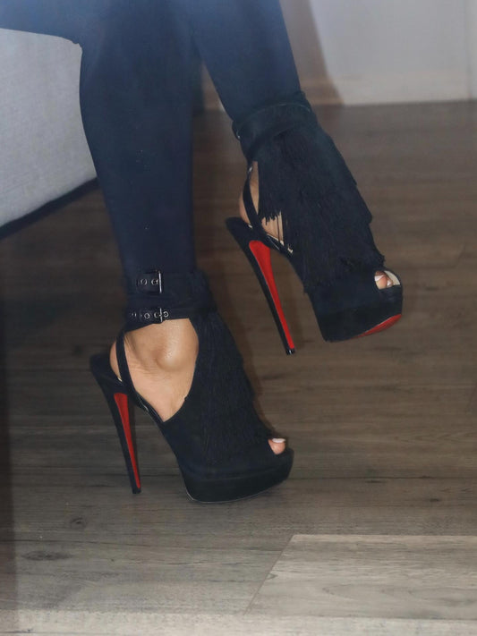 Black tassel high heels