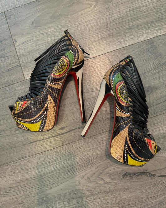 peacock feather high heels