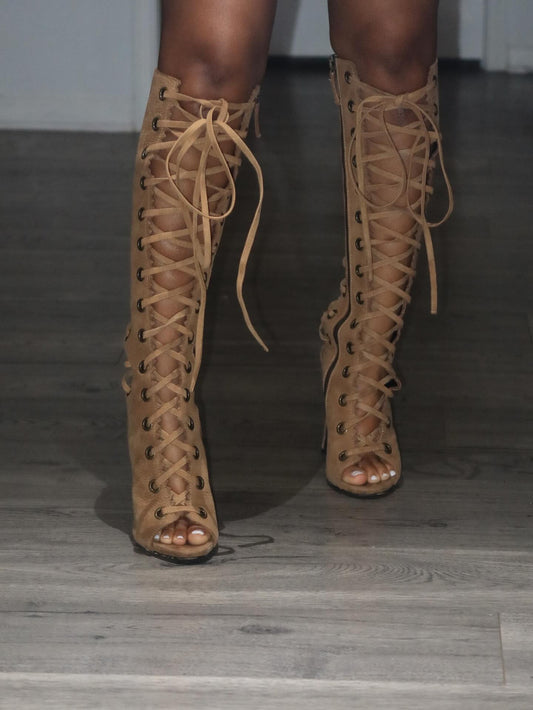 Lace-up velvet high heels