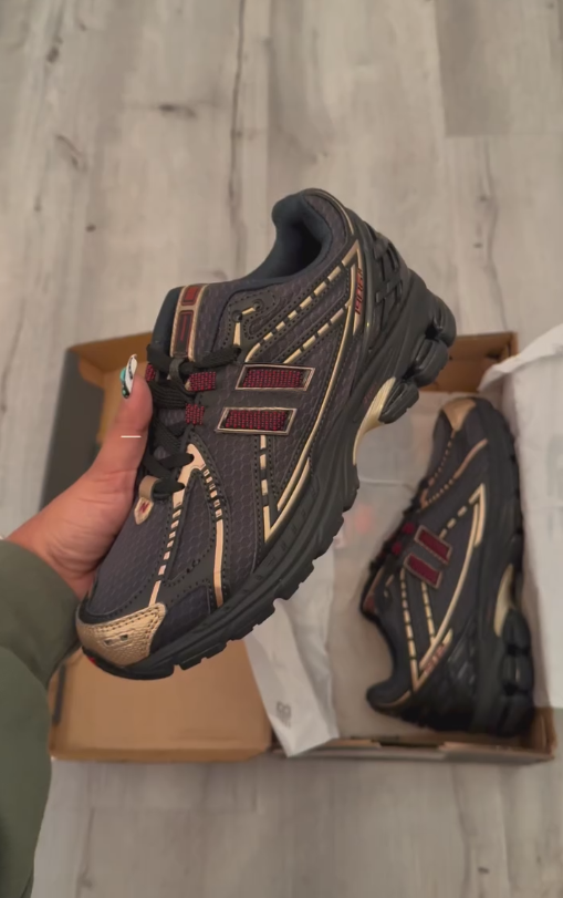 Black and gold-trimmed breathable fleece-lined sneakers